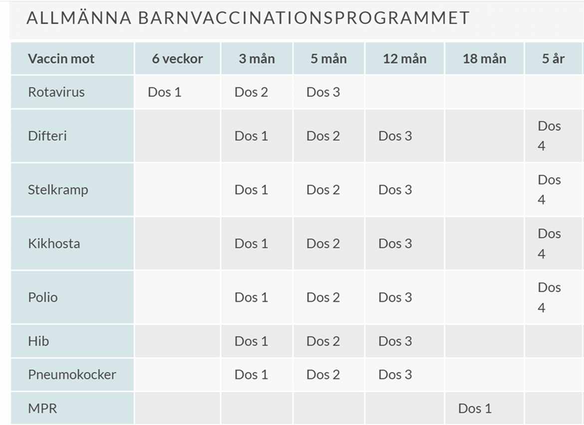 Rikshandboken, https://www.rikshandboken-bhv.se/vaccination/vaccinationsprogram/vaccinationsprogrammet-for-barn/